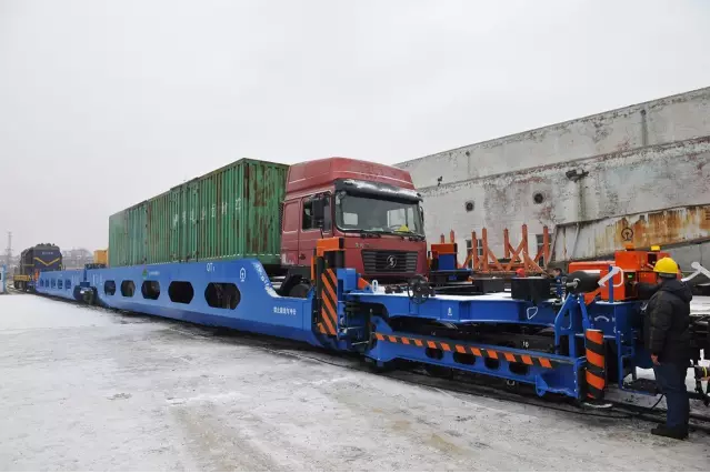 亮點四:中國首臺馱背運輸車在鄭州莆田中心站首秀。